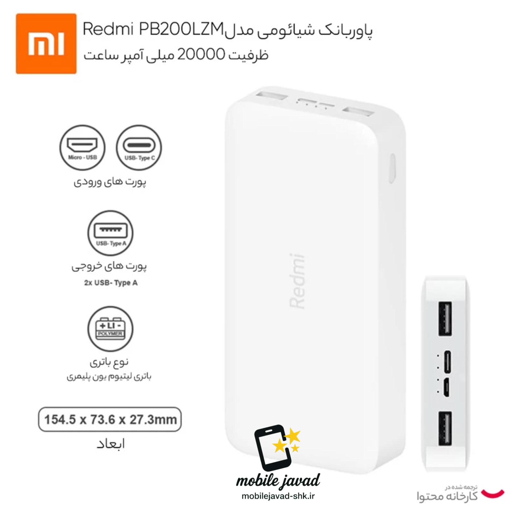 پاور بانک Redmi PB200LZM با ظرفیت واقعی ۲۰۰۰۰ میلیآمپر ساعت، یکی از محبوبترین محصولات شیائومی در دسته شارژرهای همراه است. این دستگاه با بهرهگیری از باتری لیتیوم-یونی و فناوری شارژ هوشمند، امکان شارژ سریع و ایمن را فراهم میکند. طراحی ساده و ارگونومیک، وزن مناسب (۴۷۰ گرم) و قابلیت محافظت در برابر اتصال کوتاه، افزایش دما و ولتاژ، از دیگر ویژگیهای برجسته این محصول هستند.
