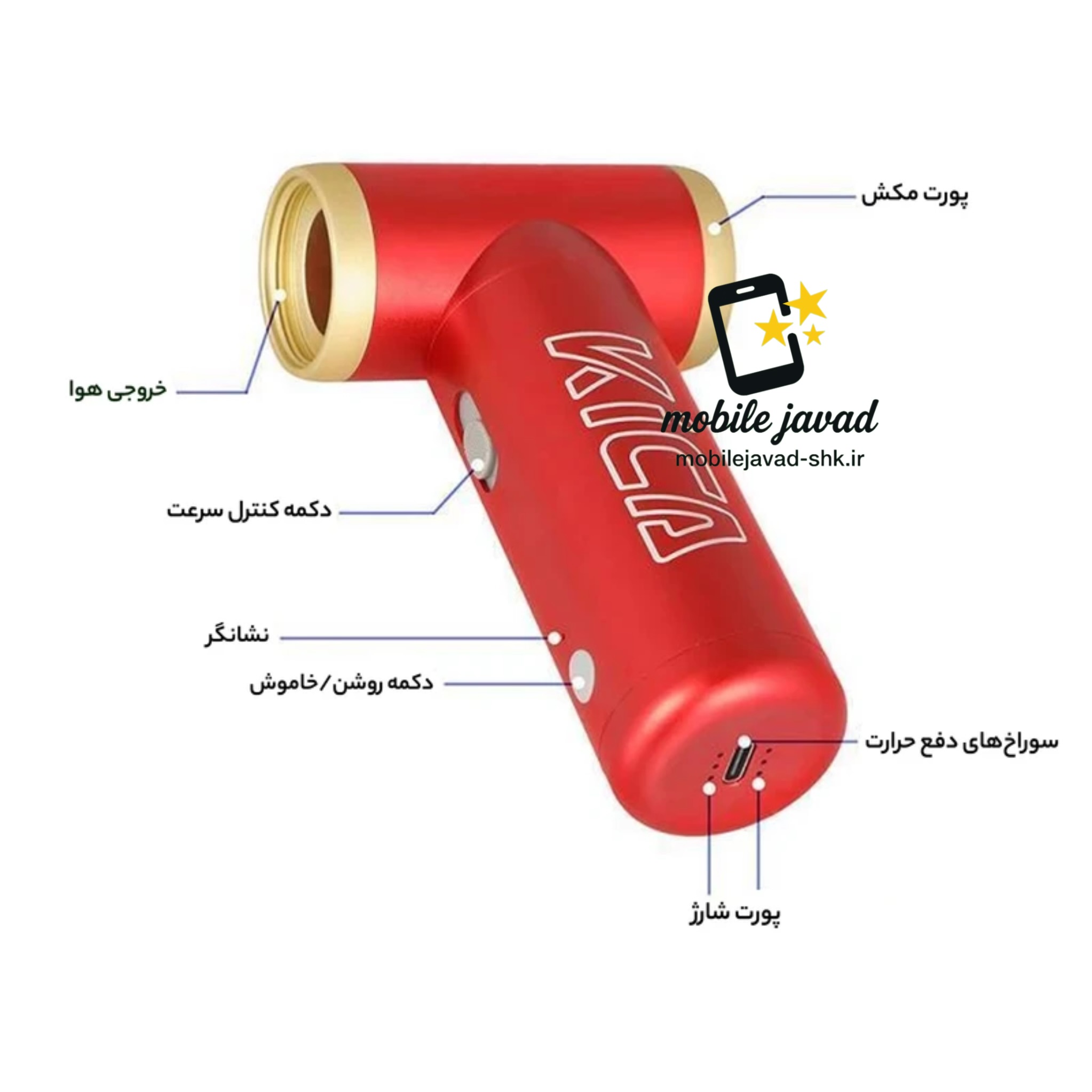 مشخصات فنی • سرعت چرخش موتور: تا ۱۰۱٬۰۰۰ دور در دقیقه (RPM) • سرعت باد: بین ۴٫ ۲۰ متر بر ثانیه • باتری: ۱۴.۸ ولت، ۱۱۰۰ میلیآمپر ساعت، ۱۶.۲۸ واتساعت • ⏱ مدت زمان شارژ: حدود ۲.۵ تا ۳.۵ ساعت از طریق پورت USBC با ورودی ۵ ولت / ۱ آمپر • مدت زمان استفاده: تا ۴.۵ ساعت در حالت کمسرعت و حدود ۲۵ دقیقه در حالت پرسرعت • ابعاد: تقریباً ۱۳ × ۴ × ۷.۵ سانتیمتر • وزن: حدود ۳۰۰ گرم • دمای کاری: بین ۰ تا ۴۰ درجه سانتیگراد ویژگیهای برجسته • کنترل سرعت پیوسته: امکان تنظیم دقیق سرعت باد با استفاده از دکمه لغزنده • طراحی ۲ در ۱: قابلیت استفاده بهعنوان دمنده و مکنده (جاروبرقی دستی) • قابل حمل: طراحی جمعوجور و سبک برای حمل آسان در سفرها و کمپینگ • بدنه مقاوم: ساختهشده از آلومینیوم با کیفیت بالا برای دوام بیشتر کاربردها • تمیزکاری: مناسب برای پاککردن گرد و غبار از کیبورد، لپتاپ و دوربین • آتشافروزی: کمک به روشنکردن آتش در کمپینگ • باد کردن: قابل استفاده برای باد کردن تشکهای بادی، بادکنک و وسایل بادی دیگر • خشککردن: قابل استفاده بهعنوان سشوار دستی • خنککنندگی: استفاده بهعنوان فن شخصی در روزهای گرم 1. 2. 3. 4. 5. 6. 7. 8. 9. 10. 11. 12. 13. 14. 15. 16. 17. 18. 19. 20. 21. 22. 23. 24. 25. 26. 27. 28. 29. 30. @mobilejavad_shk @mobilejavad_shk @mobilejavad_shk